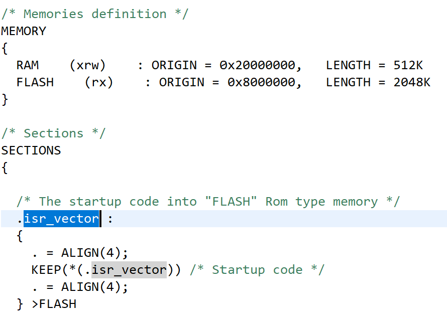 - .isr_vector 段被放置在 Flash 起始地址