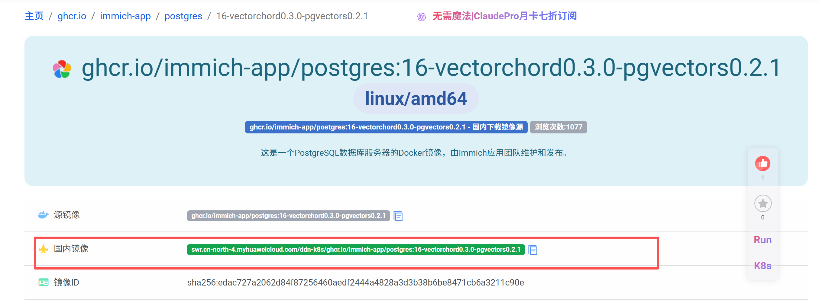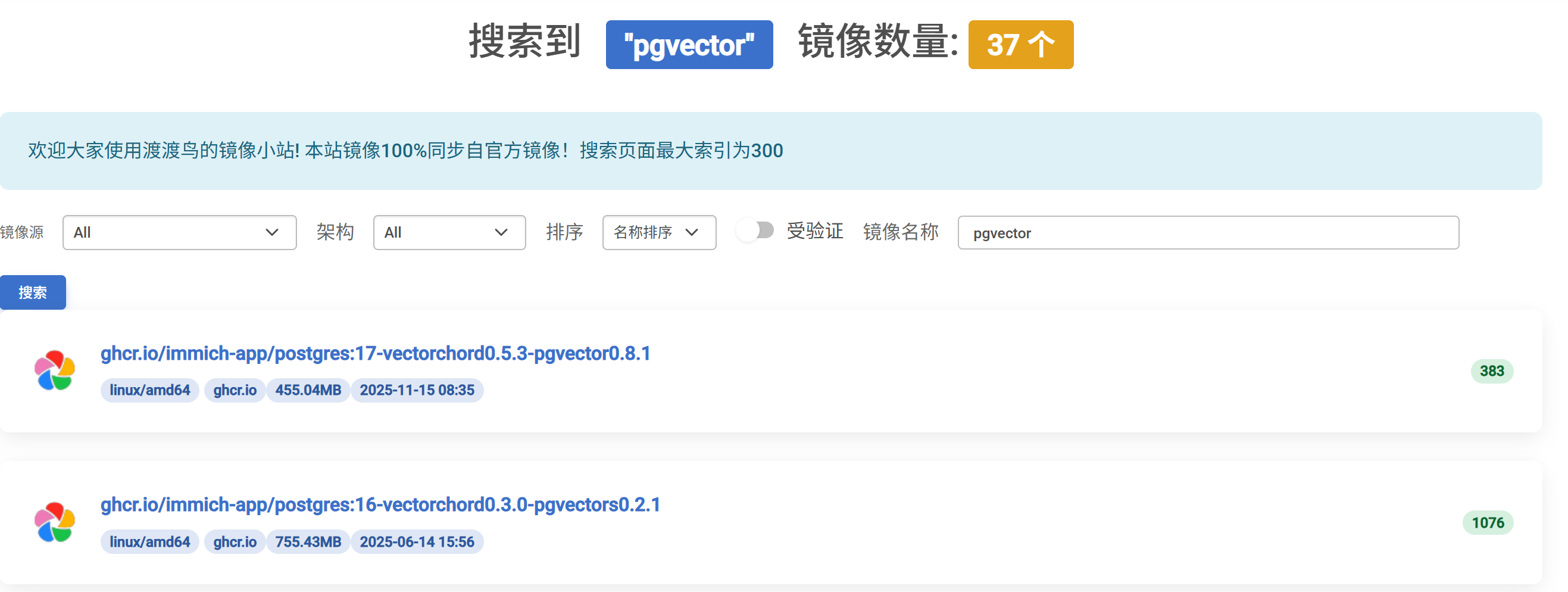 搜索带有pgvector的postgresql,复制国内镜像源拉取