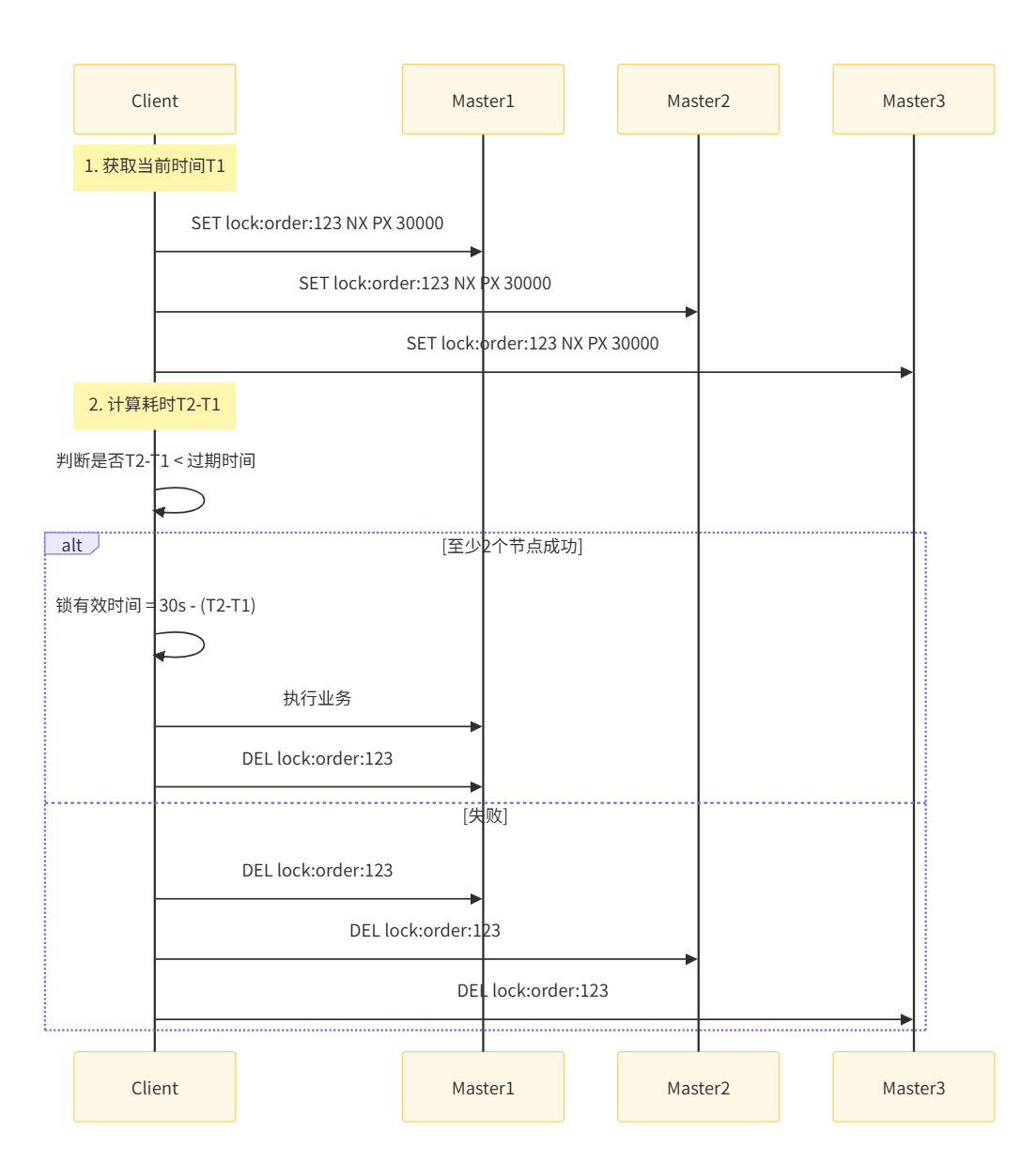 - 但锁仍会在原始 TTL(30 秒)后过期,不会造成死锁