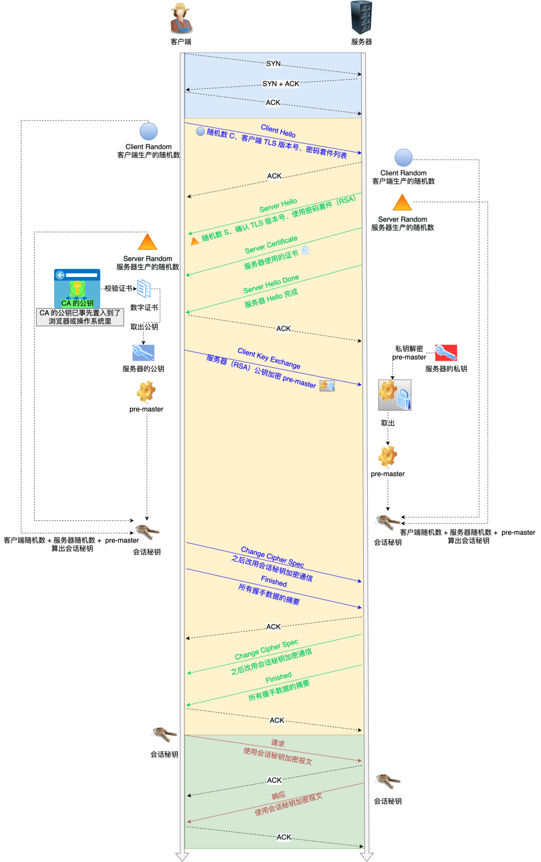 你描述的流程是RSA密钥交换 ,这不支持前向保密 。现代网站更多使用ECDHE_RSA:
