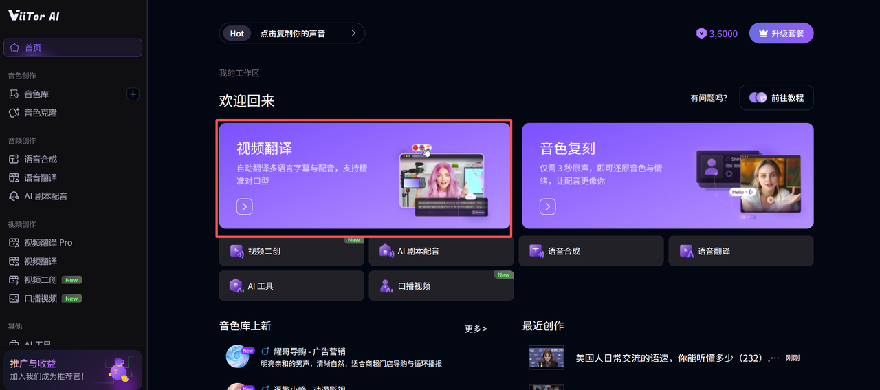 ViiTor AI 是一种高效且专业的解决方案,支持 19 种语言翻译和上千种自然语音配音。它结合了前沿的 AI 技术与用户友好的设计,可以在几分钟内提供专业质量的翻译,而不是几个小时,非常适合内容创作者、教育工作者和营销人员使用。