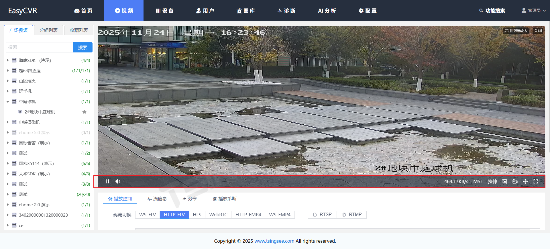 可将接入的异构视频流统一转码为RTMP、RTSP、HTTP-FLV、WebSocket-FLV、HLS、WebRTC、WS-FMP4、HTTP-FMP4等多格式输出,支持指挥中心大屏、PC浏览器、手机APP、平板等多终端无插件播放,满足护林员移动巡检、管理人员远程监管、指挥中心集中调度的多样化需求。