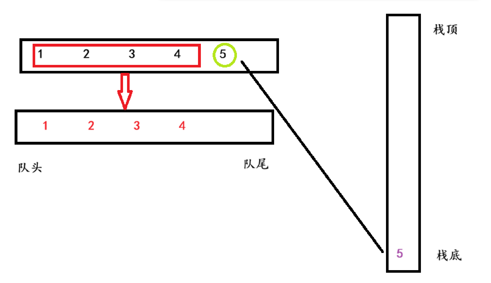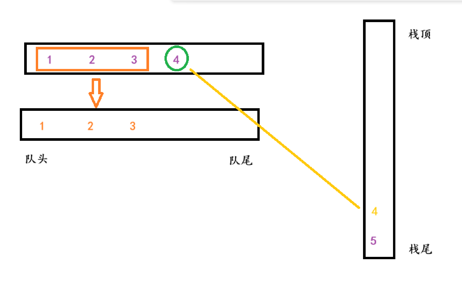 队列的特性是先进先出,栈的特性是后进先出。可以根据两者的特性进行进阶的变化,下面将画图展示该变化。
