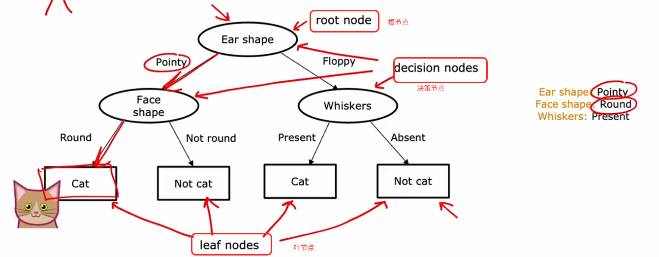 - 直到分出全是猫的集合之后,左子树结束迭代