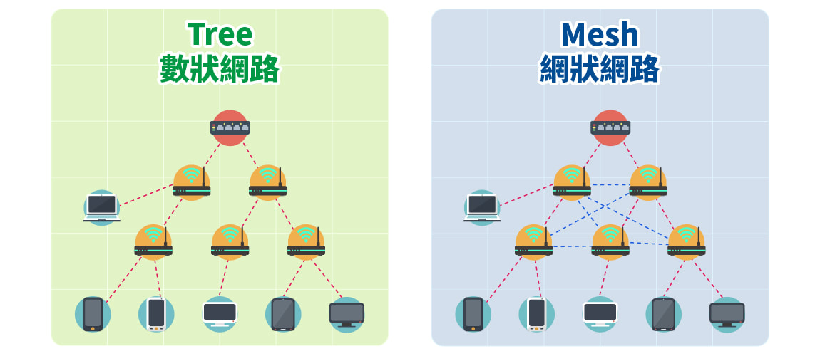 Mesh (网状网络) 是目前解决大户型 Wi-Fi 覆盖的主流方案(如领势 Linksys, 华硕 Velop, 小米 Mesh)。