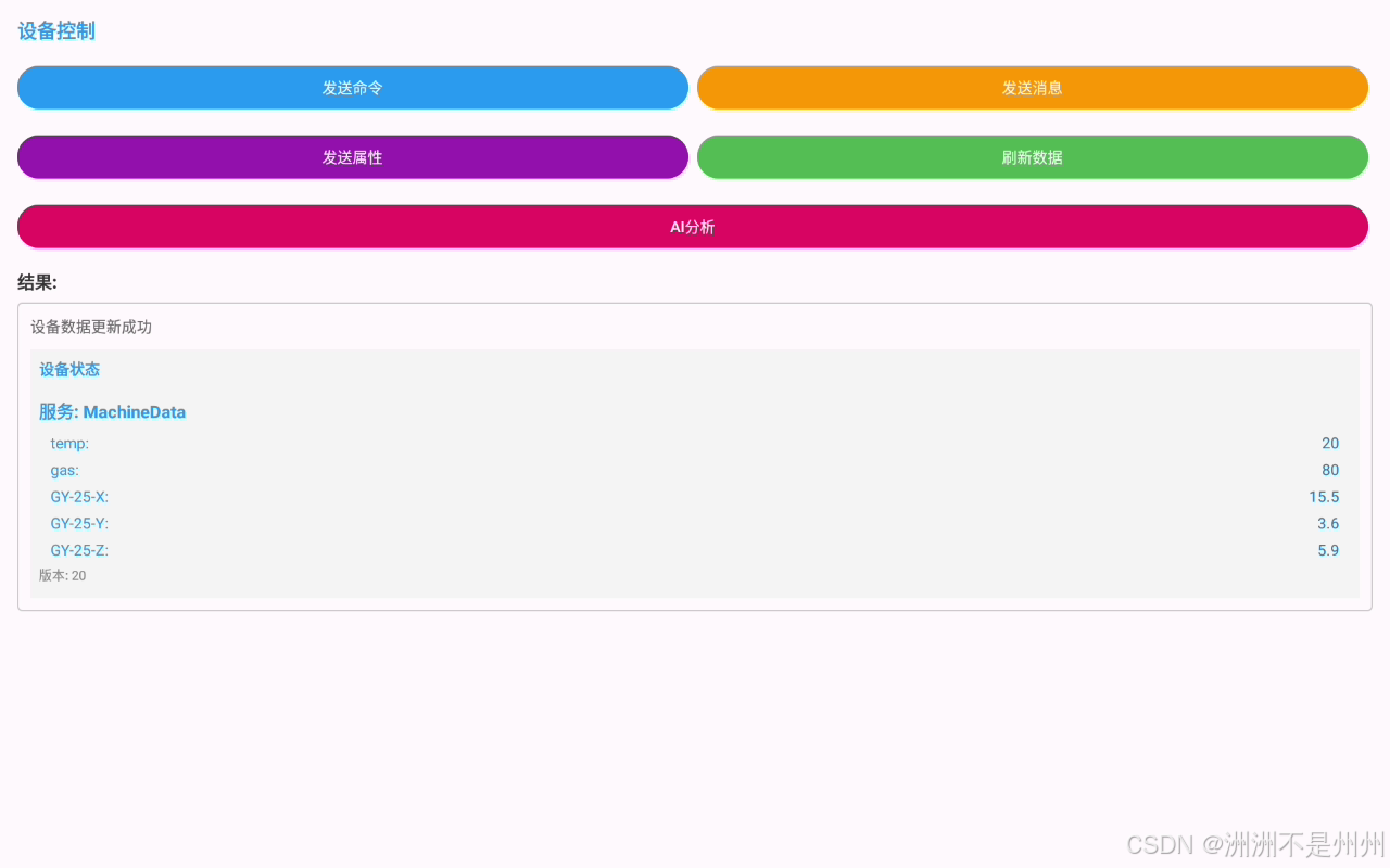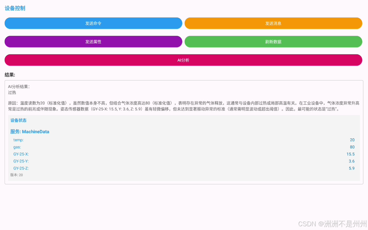 现在要实现的手机APP端与云端的双向通信,从而就能实现手机与底层设备的双向通信。本次博主还将手机端的APK接入了AI大模型,在获取到底层的设备数据后进行AI分析具体的数据。