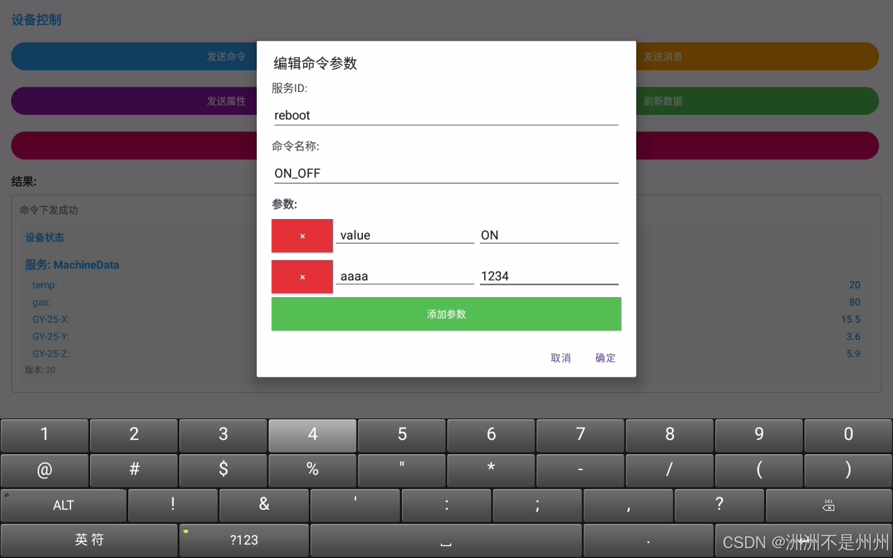在底层设备接受到的手机端发送的消息、命令、参数: