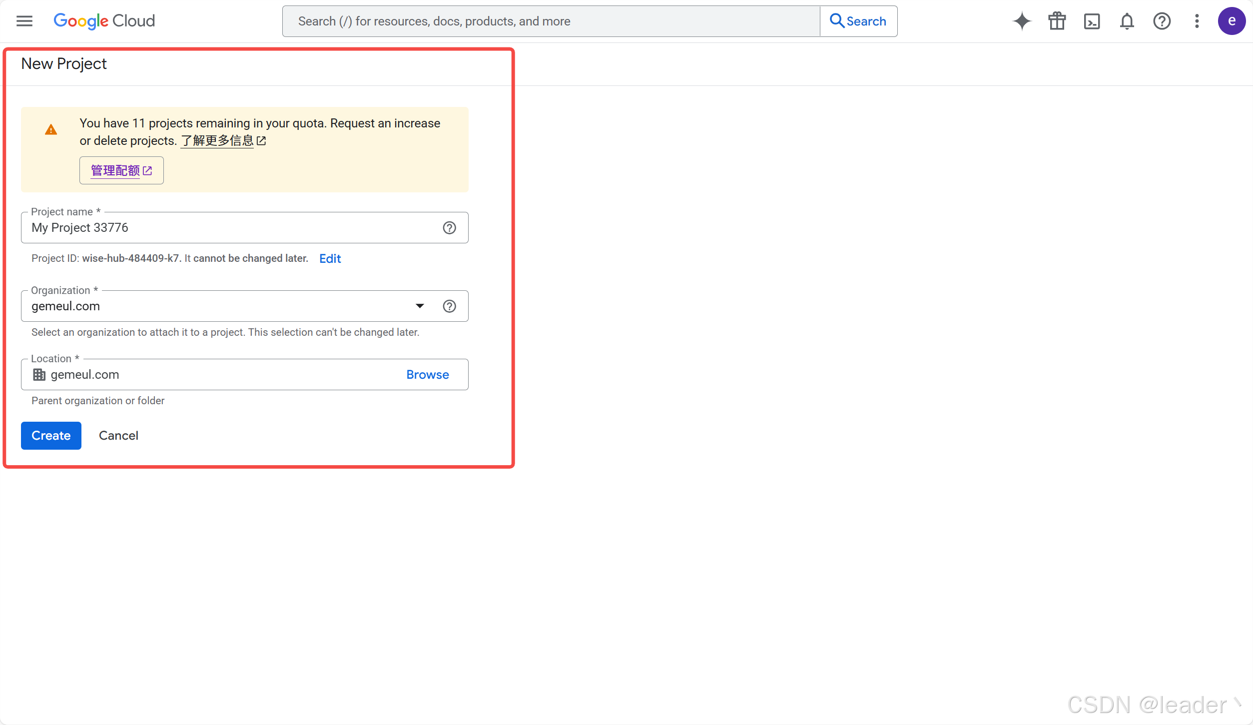 1.登录https://console.cloud.google.com ➡ New project ➡ 测试项目信息可随意填写