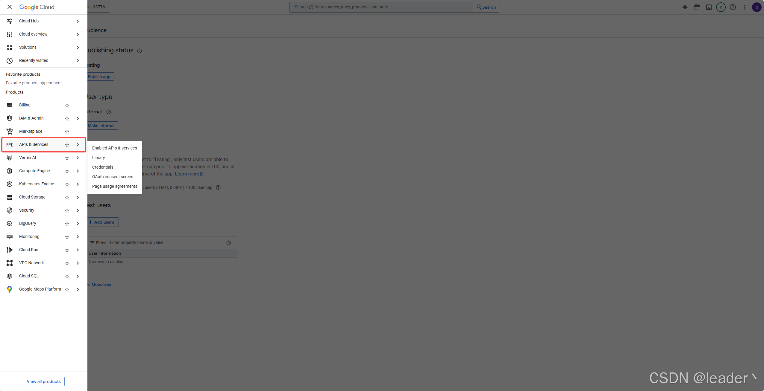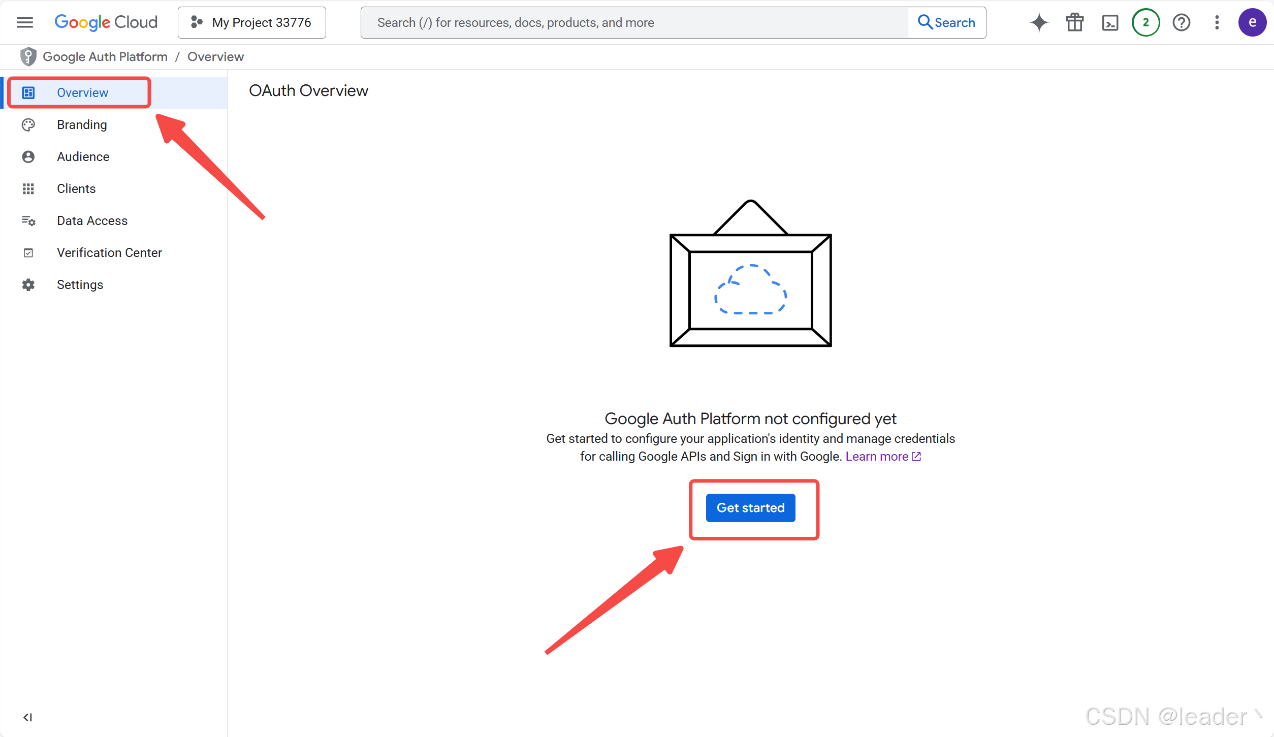 2. APIs & Services ➡ Credentials ➡ OAuth consent screen ➡ Get started