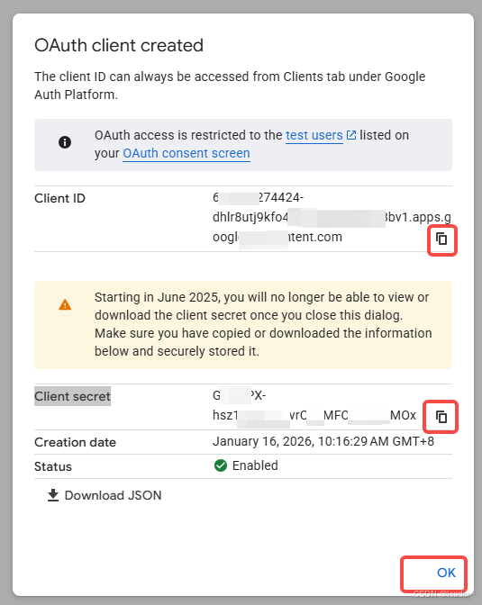 7.保存Client ID和Client secret