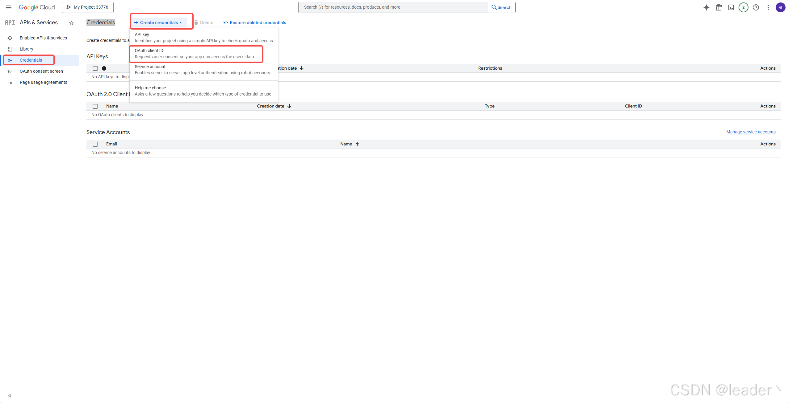 5.左上角Navigation menu (.) ➡ APIs & Services ➡ Credentials ➡ 上方新增OAuth client ID