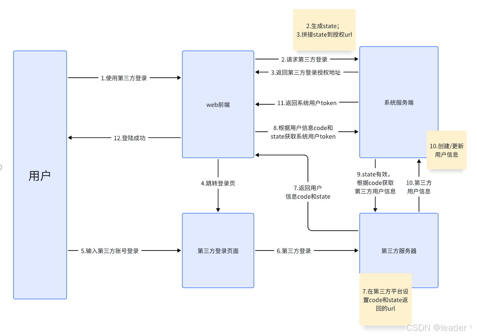 状态参数state为系统服务器生成,用于防止CSRF攻击