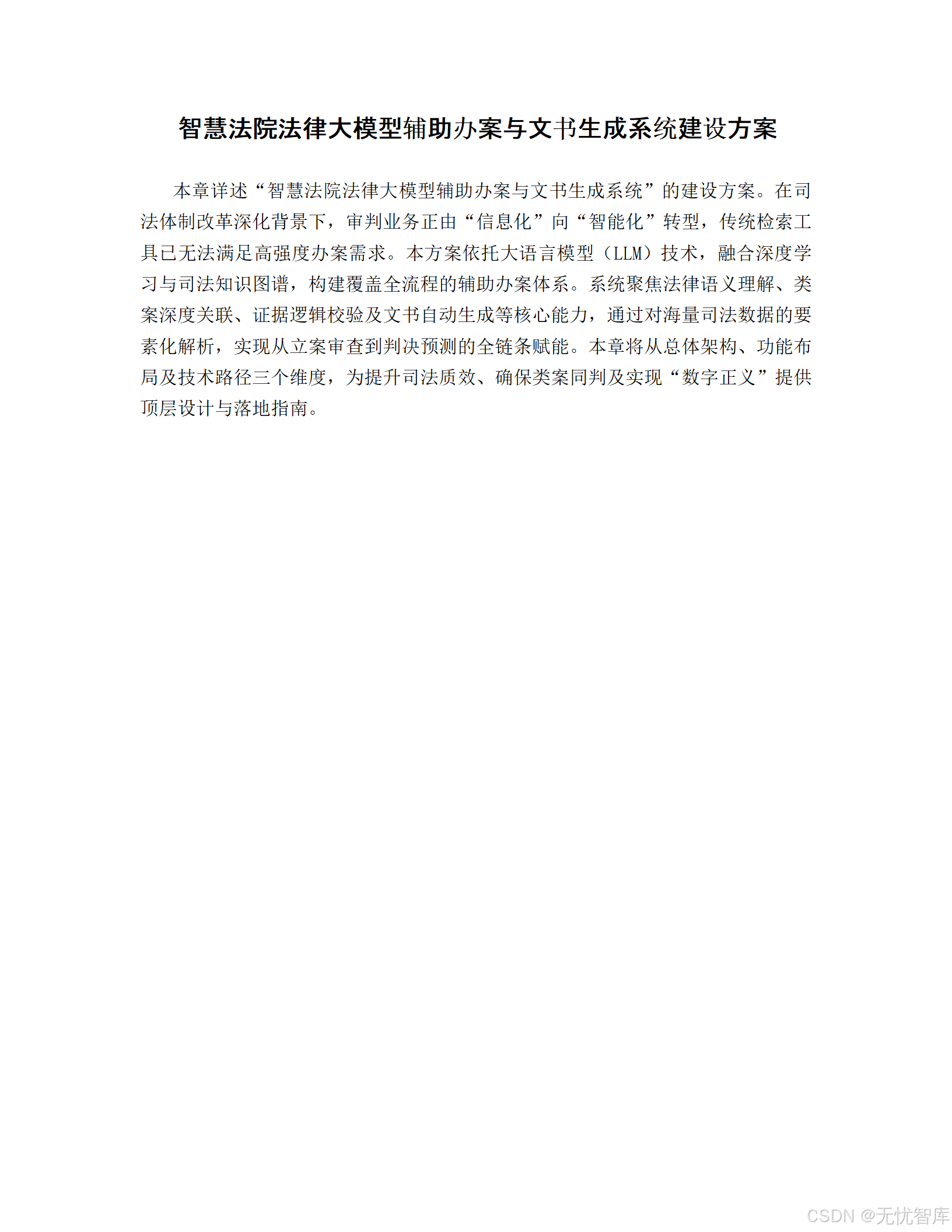 总而言之,《智慧法院法律大模型辅助办案与文书生成系统建设方案》不仅描绘了一幅技术赋能司法的宏伟蓝图,更提供了一套兼具前瞻性、可行性与安全性的完整实施路径。它标志着司法智能化建设已从概念探讨迈入了深度实践的新阶段,必将为构建更高水平的"数字正义"贡献核心力量。