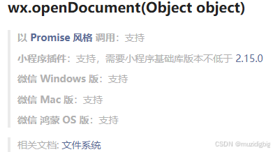 - wx.openDocument() 微信小程序提供的一个 API,用于在新页面中打开文档,开发者可以让用户预览或查看各类文档文件。