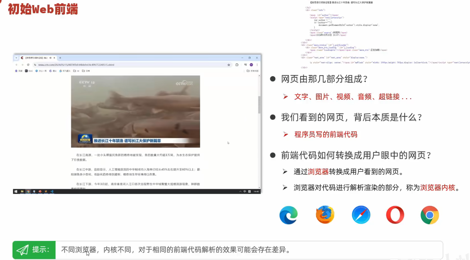 这些代码是人类可读的文本指令,告诉浏览器如何构建用户界面、如何响应用户交互。每一张图片的位置、每一段文字的样式、每一个按钮的动画,都是通过代码精确控制的。