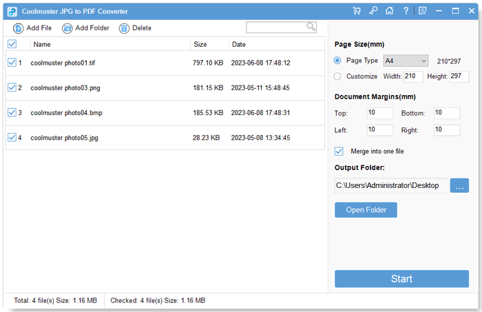 此外,它还拥有强大的处理能力和处理批处理文件的能力。立即下载Coolmuster JPG to PDF Converter,享受将多种图片格式转换为单个 PDF 文件的便利。