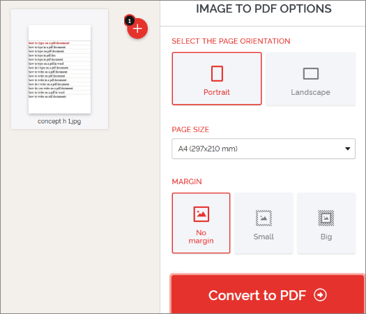 步骤 2. 您可以选择所需的方向、调整页面大小并选择边距。然后点击"转换为 PDF"按钮。