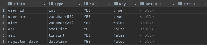 ENGINE = OLAP DUPLICATE KEY(user_id, username) -- 明细模型,指定排序键