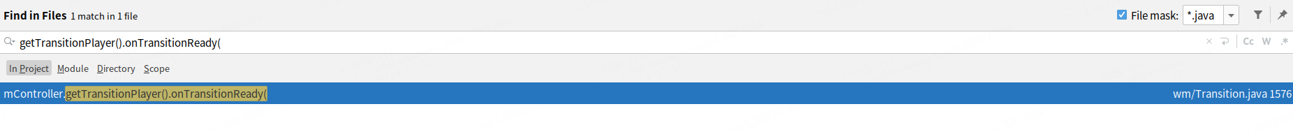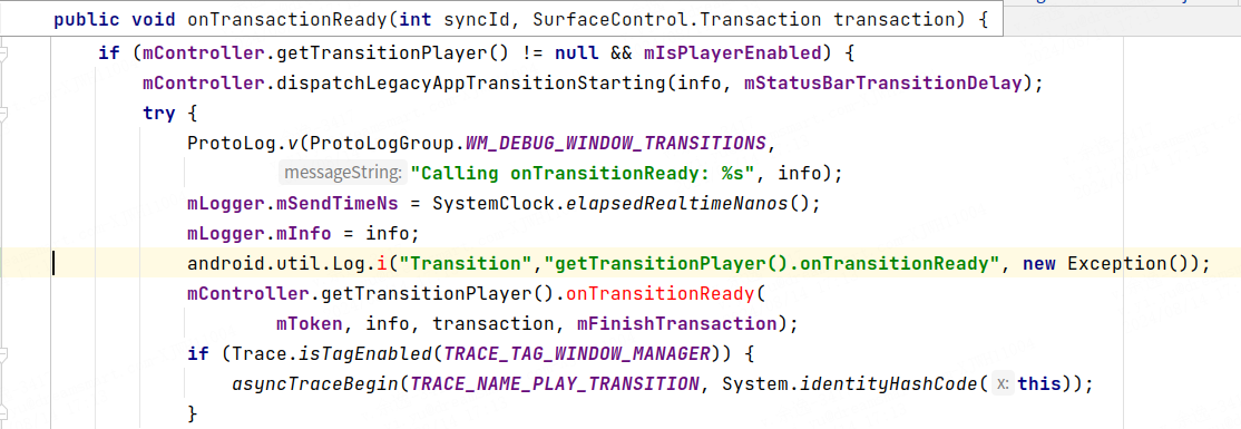 搜索其调用 mTransitionPlayer.onTransitionReady(