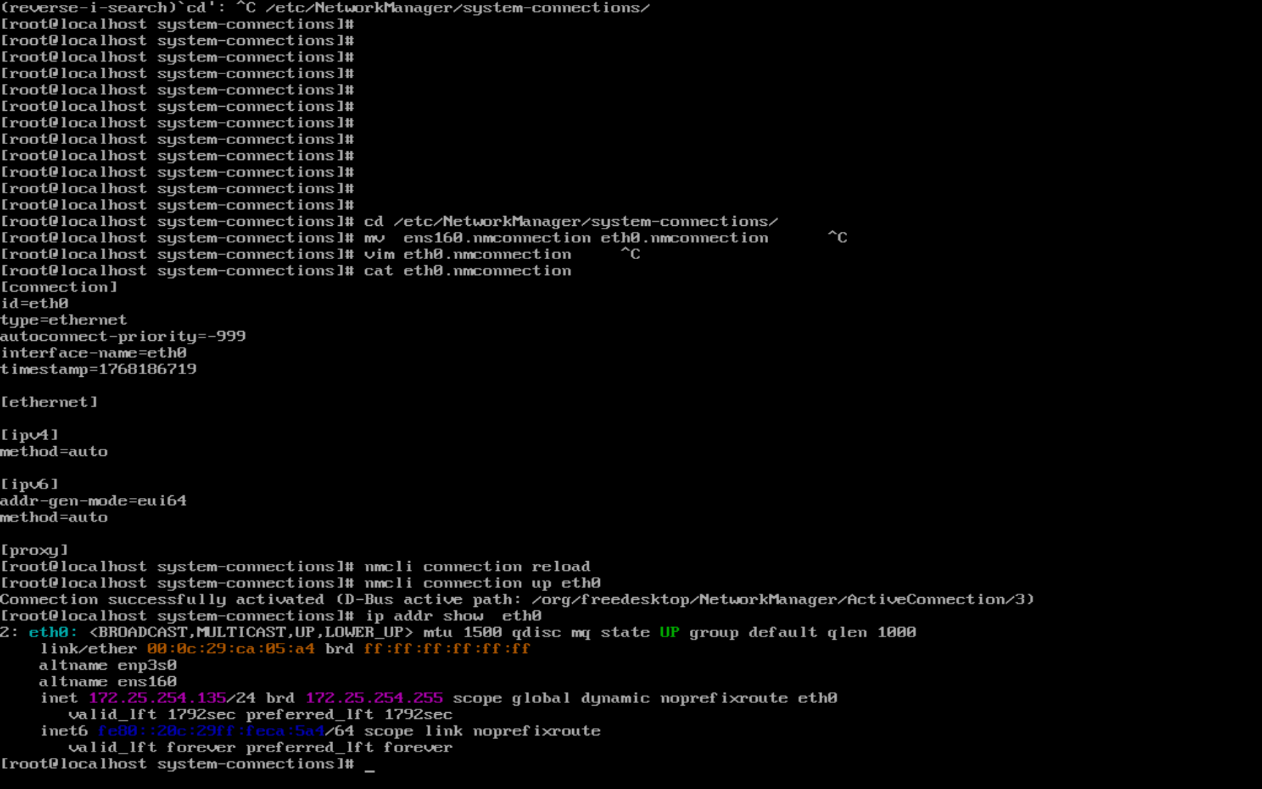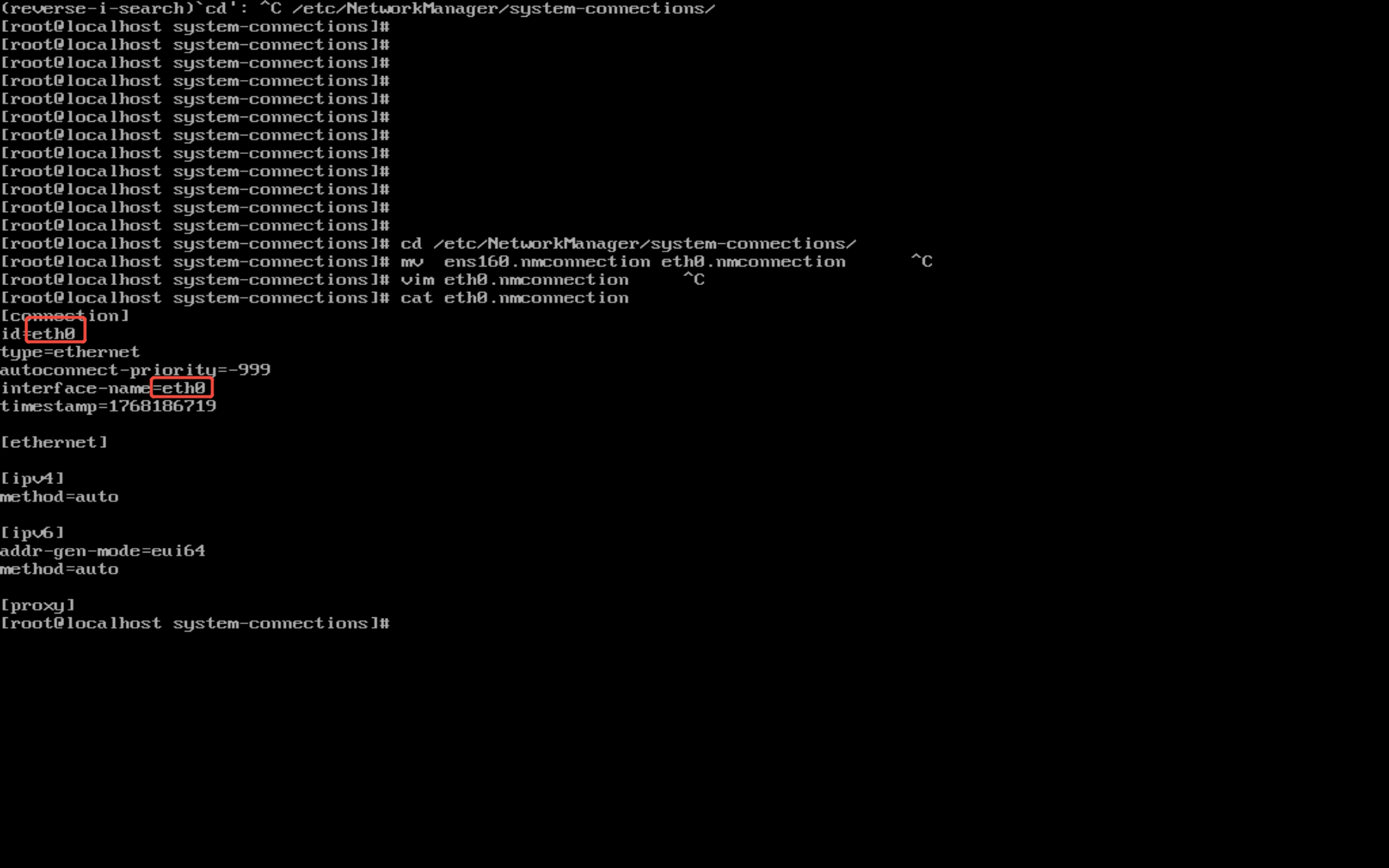 [root@localhost]# mv ens160.nmconnection eth0.nmconnection