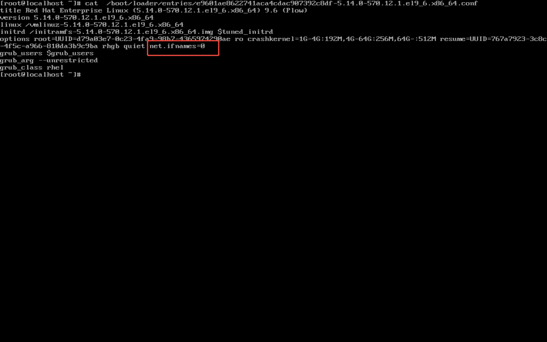 [root@localhost]# vim /boot/loader/enteries/e960a86937e38r64894-5.14.0-635757382r.x86-64.conf