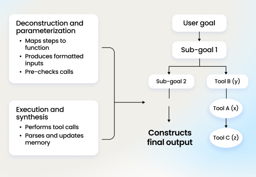 ▲AI智能体的目标拆解、工具选择与执行