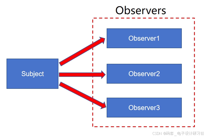 观察者设计模式属于行为型设计模式 ,又称发布-订阅 模式,定义了对象间的一对多依赖关系,被观察对象 状态发生变化时,所有订阅它的观察对象都会受到通知并自动更新。