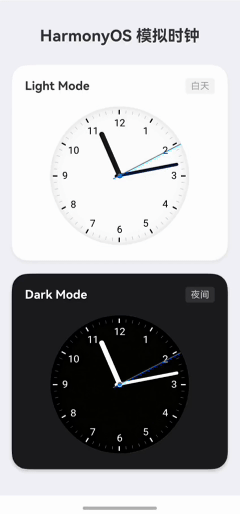 AnalogClockLight:亮色主题,适合白天、浅色背景、卡片式 UI。AnalogClockDark:暗色主题,更适合深色背景、夜间模式。