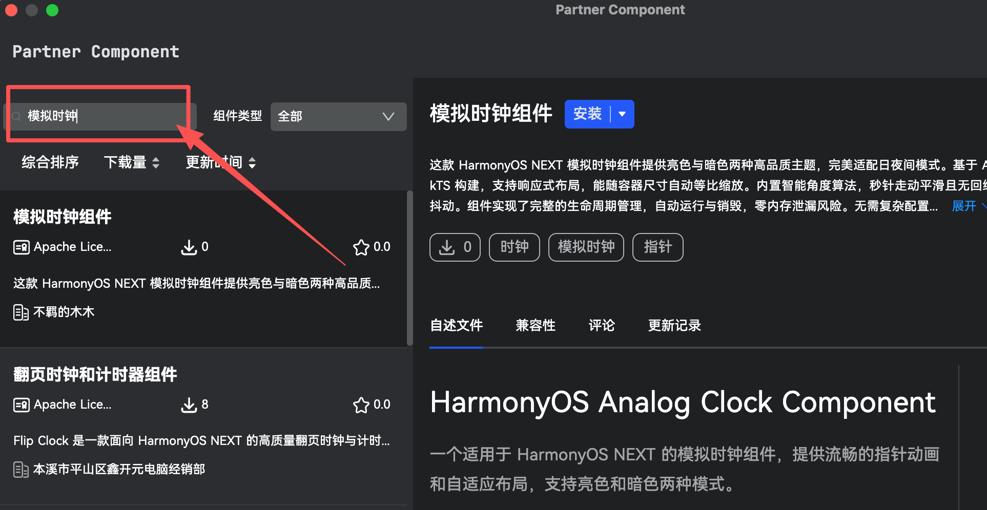 在搜索框输入"模拟时钟"查询: