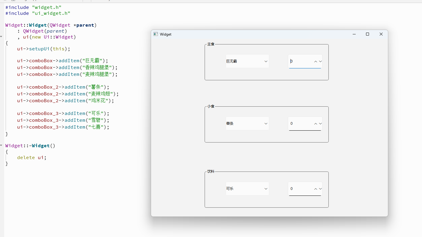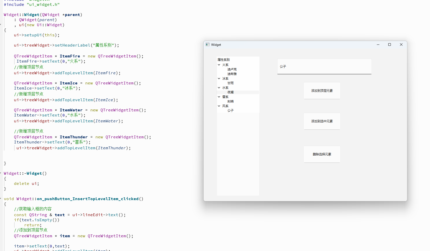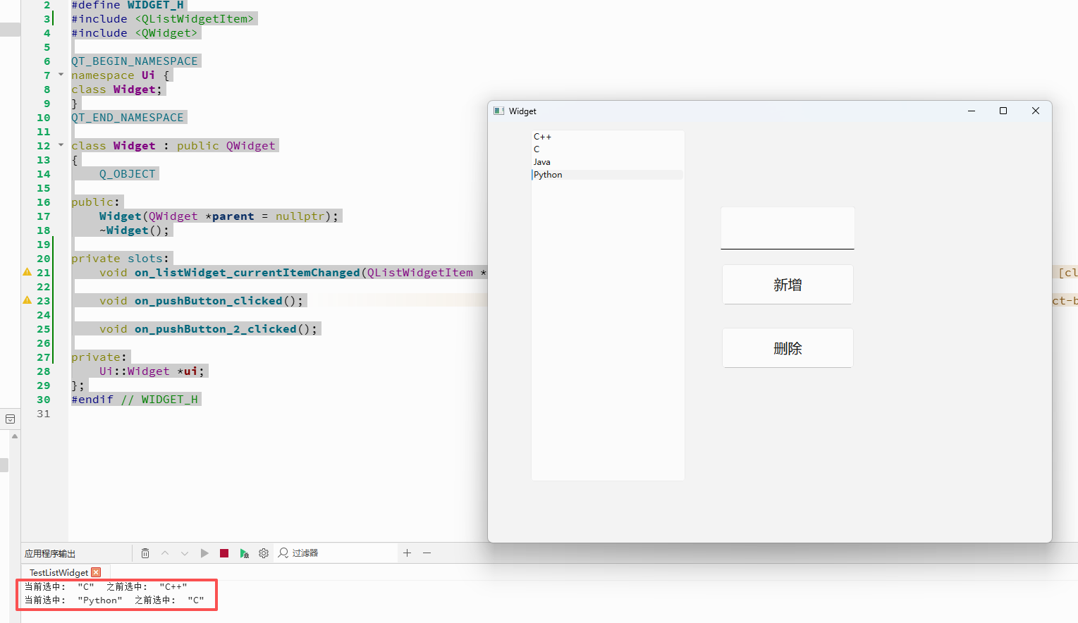编写 widget.cpp, 在构造函数中添加初始元素,这里需要给widget.h前面加上#include <QListWidgetItem>