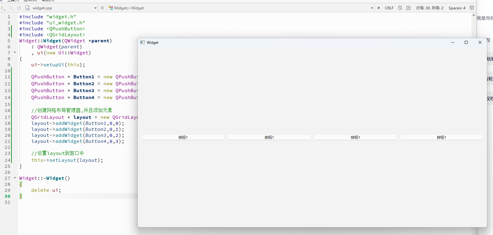另外不要忘了, QGridLayout里面也能嵌套 QHBoxLayout 和 QVBoxLayout以及QHBoxLayout 和 QVBoxLayout李米娜也能嵌套 QGridLayout .灵活使用上述布局管理器, 就可以实现出任意的复杂界面.