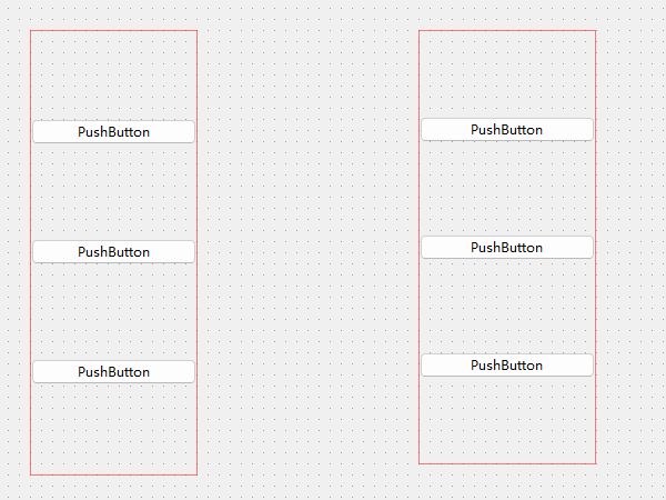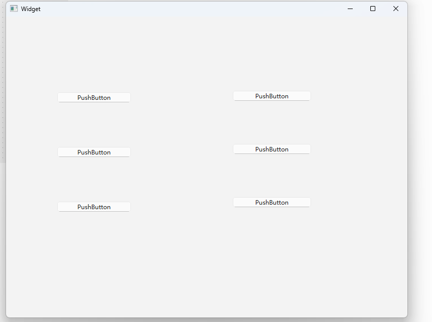 执行代码, 可以看到这几个按钮都在同⼀列了. 相当于 QVBoxLayout.