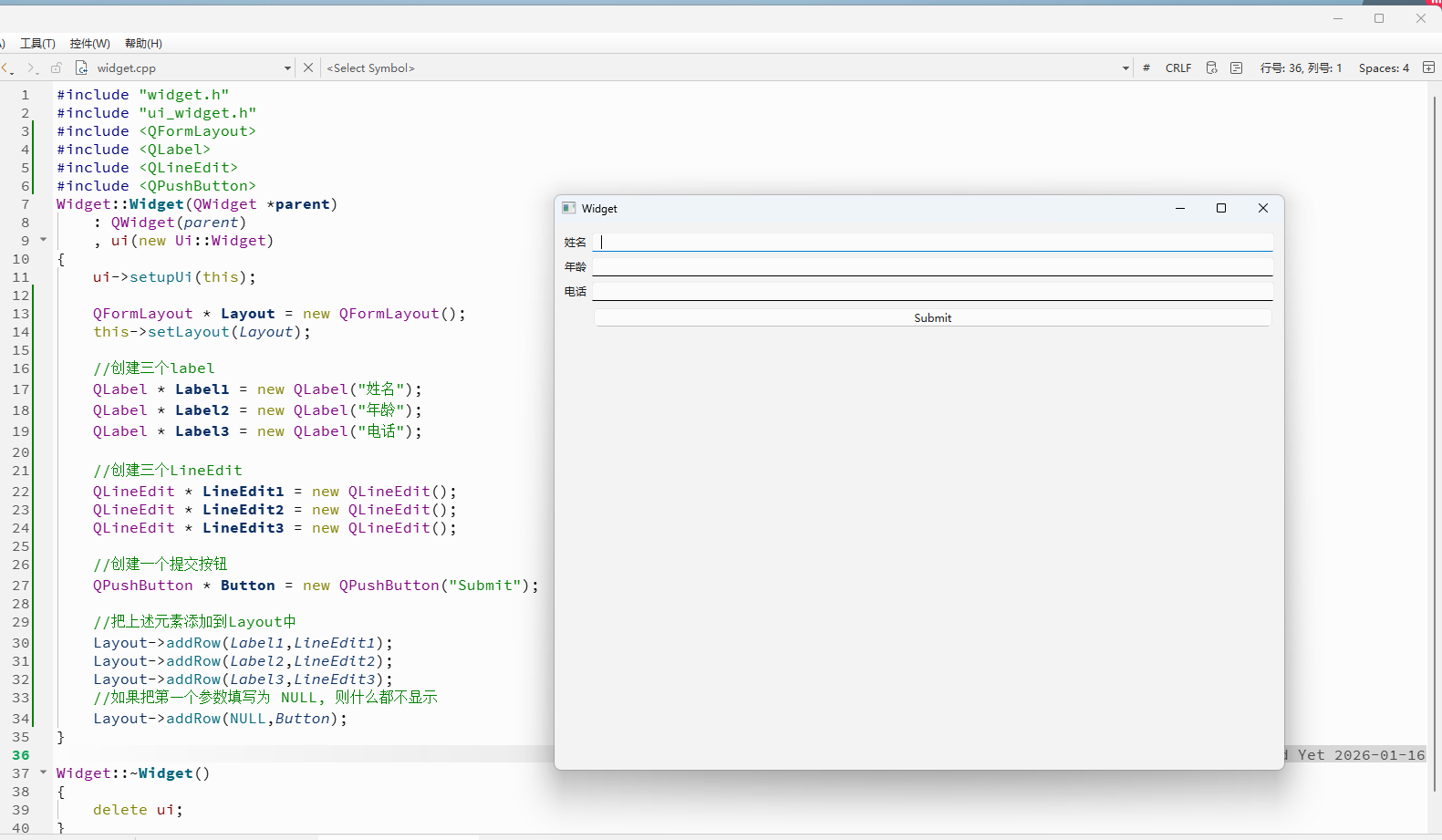 - 除了上述的布局管理器之外, Qt 还提供了 QFormLayout , 属于是 QGridLayout 的特殊情况, 专门用于实现两列表单的布局.