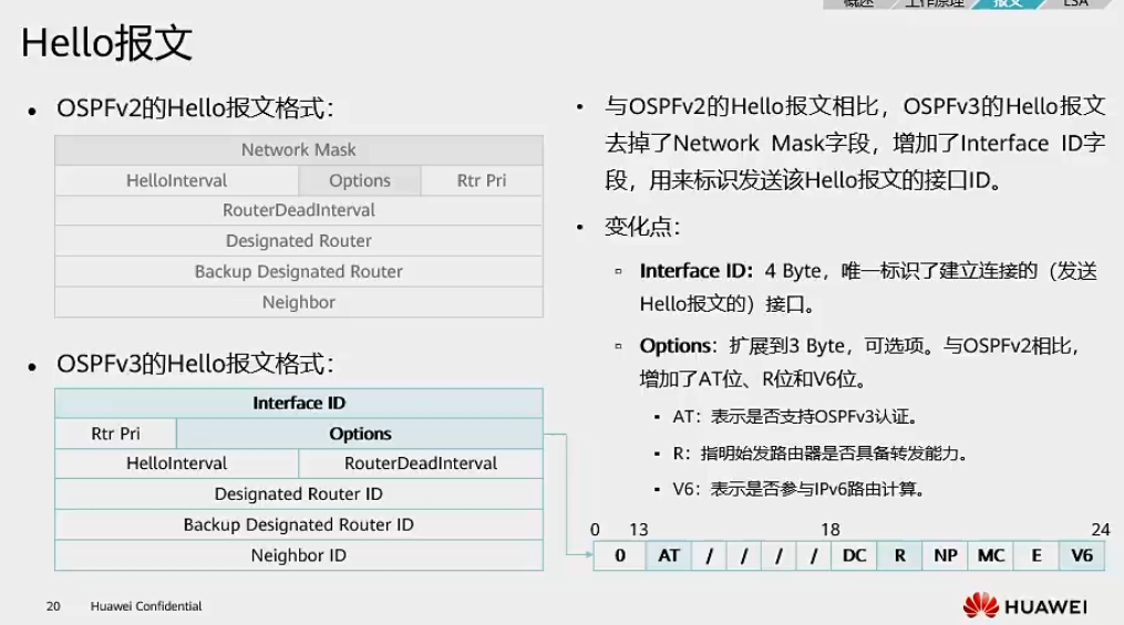 - AT(1bit):是否支持 OSPFv3 认证,AT=1 时报文后会增加认证尾部字段;
