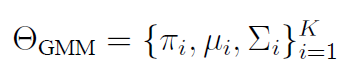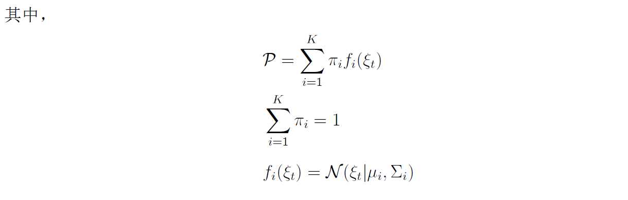 式中,代表教阶段收集的数据; 表示概率密度函数; 表示每个高斯组分的系数,满足,且所有系数之和为 1;表示条件概率密度函数,通常表示为高斯分布。