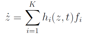 在示教学习过程中,运动技能表达模型用于对人/机器人技能的运动轨迹进行通用性描述。一般地,可以用一系列简单的子系统加权求和来表示一条较为复杂运动轨迹,即: