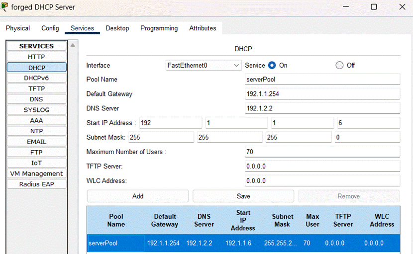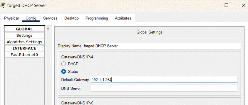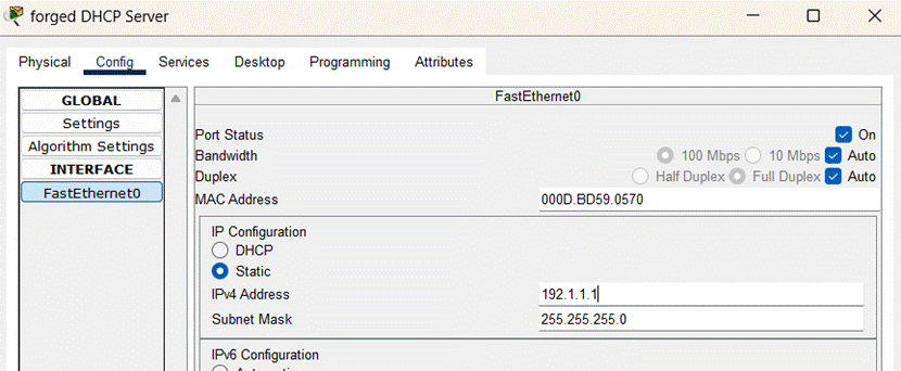 (7)完成伪造的DHCP服务器的配置,如图所示: