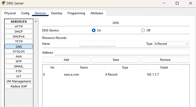 完成DNS服务器配置,如图所示: