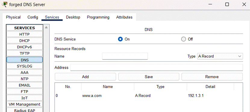 完成伪造的DNS服务器的配置,如图所示: