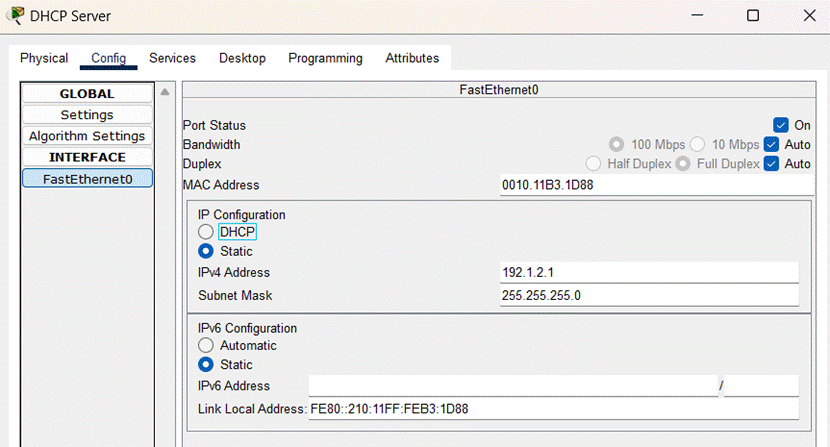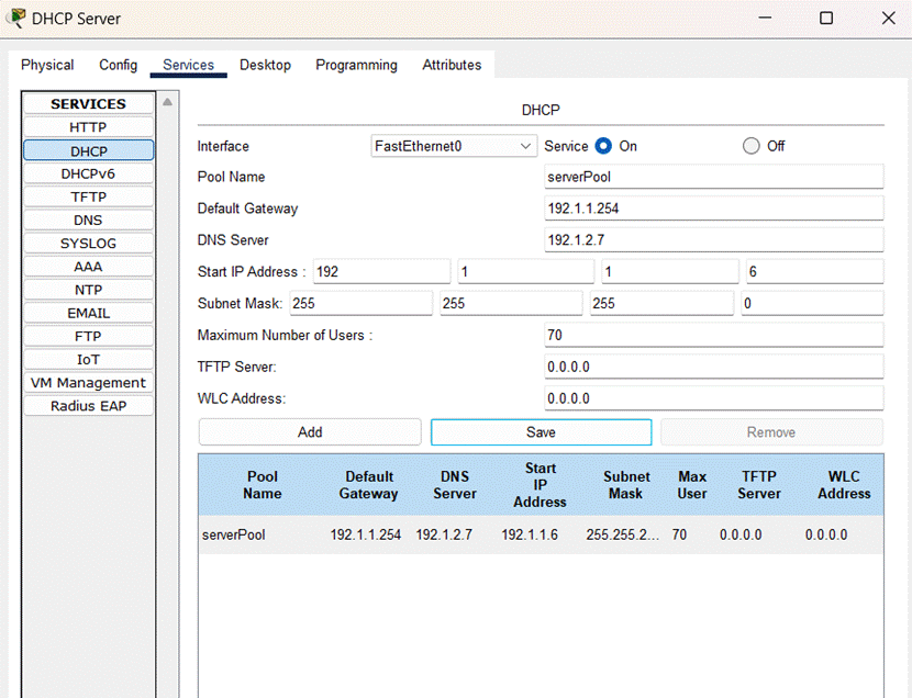 (3)完成DHCP服务器的配置,如图所示: