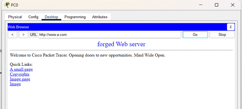 PC0访问的Web服务器的主页如图: