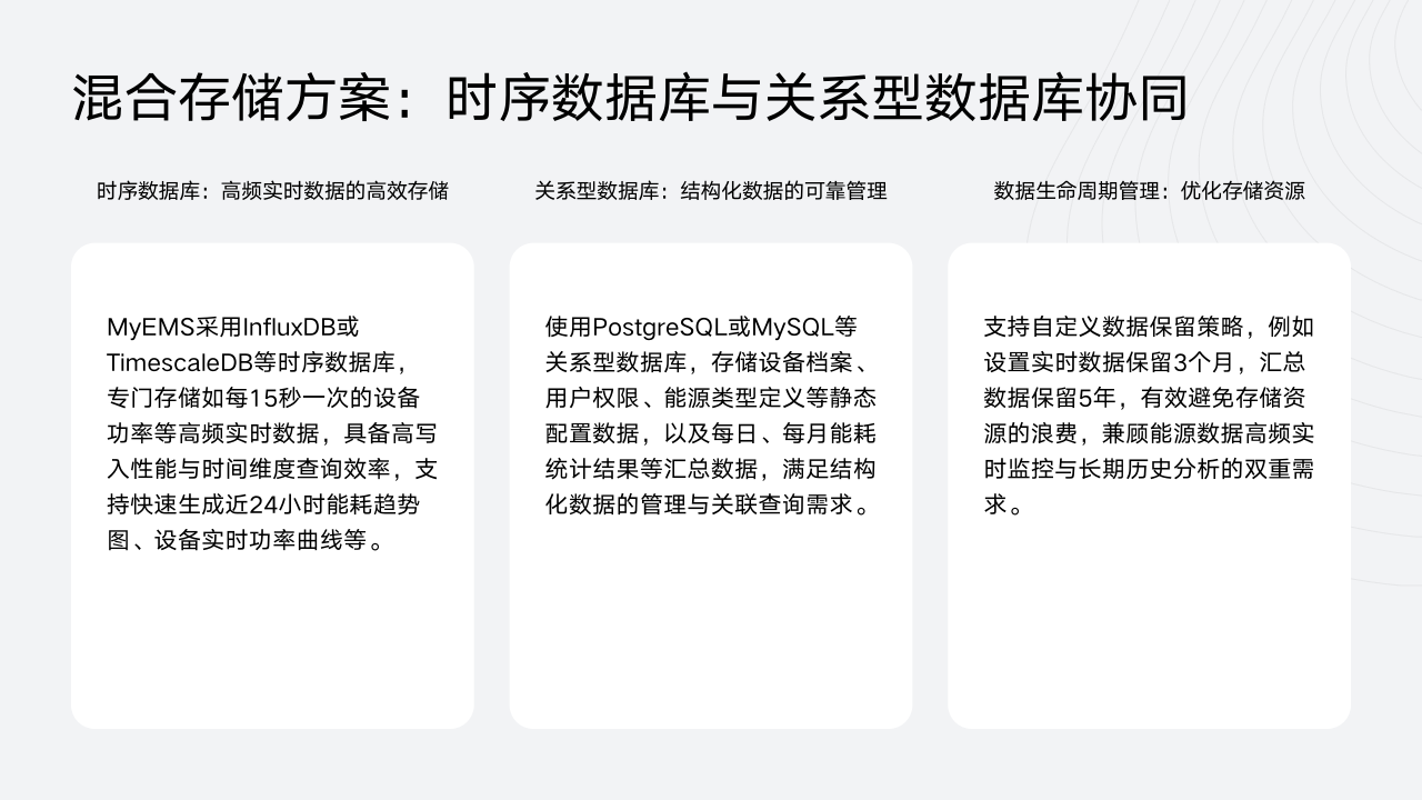 MyEMS采用的混合存储方案,由时序数据库与关系型数据库协同构建,为原油加工企业的能源数据管理提供了高效且可靠的解决方案。