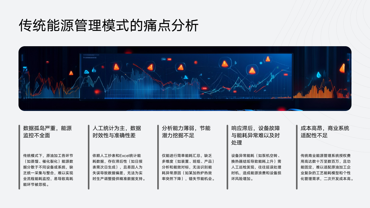 传统能源管理模式在原油加工行业存在诸多痛点,严重制约着能源管理的效率和企业的可持续发展。