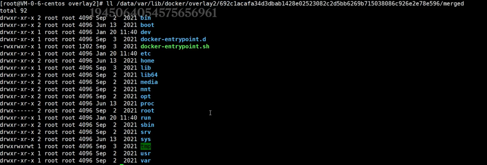 最后我们查看下 mergeddir,发现 merged dir 是不存在的,当我们启动为容器的