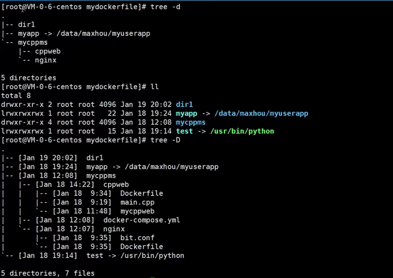执行 tree 指令,它会列出指定目录下的所有文件,包括子目录里的文件。