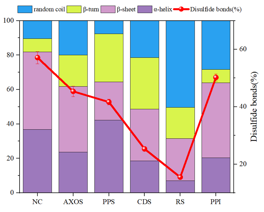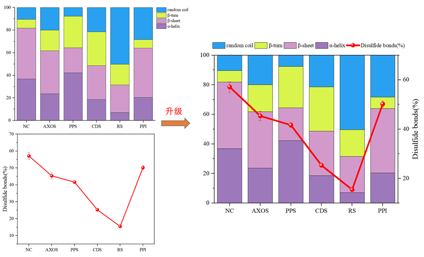 本期教程以蛋白质二级结构和二硫键的数据来叙述如何将多个单独的数据绘制成双Y轴柱状图,以此来阐述趋势和各个数据之间的相互关系。