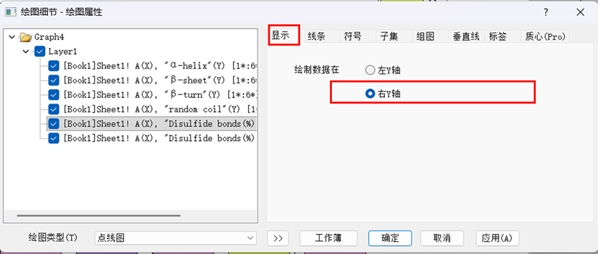 8.双击点线图数据,在现实对话框下,勾选右Y轴;