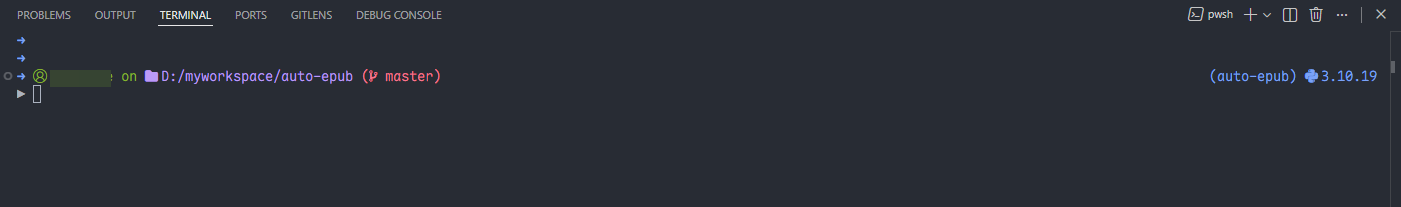 展示为:➜ username on D:/myworkspace/auto-epub ( master) (venv) 3.10.19