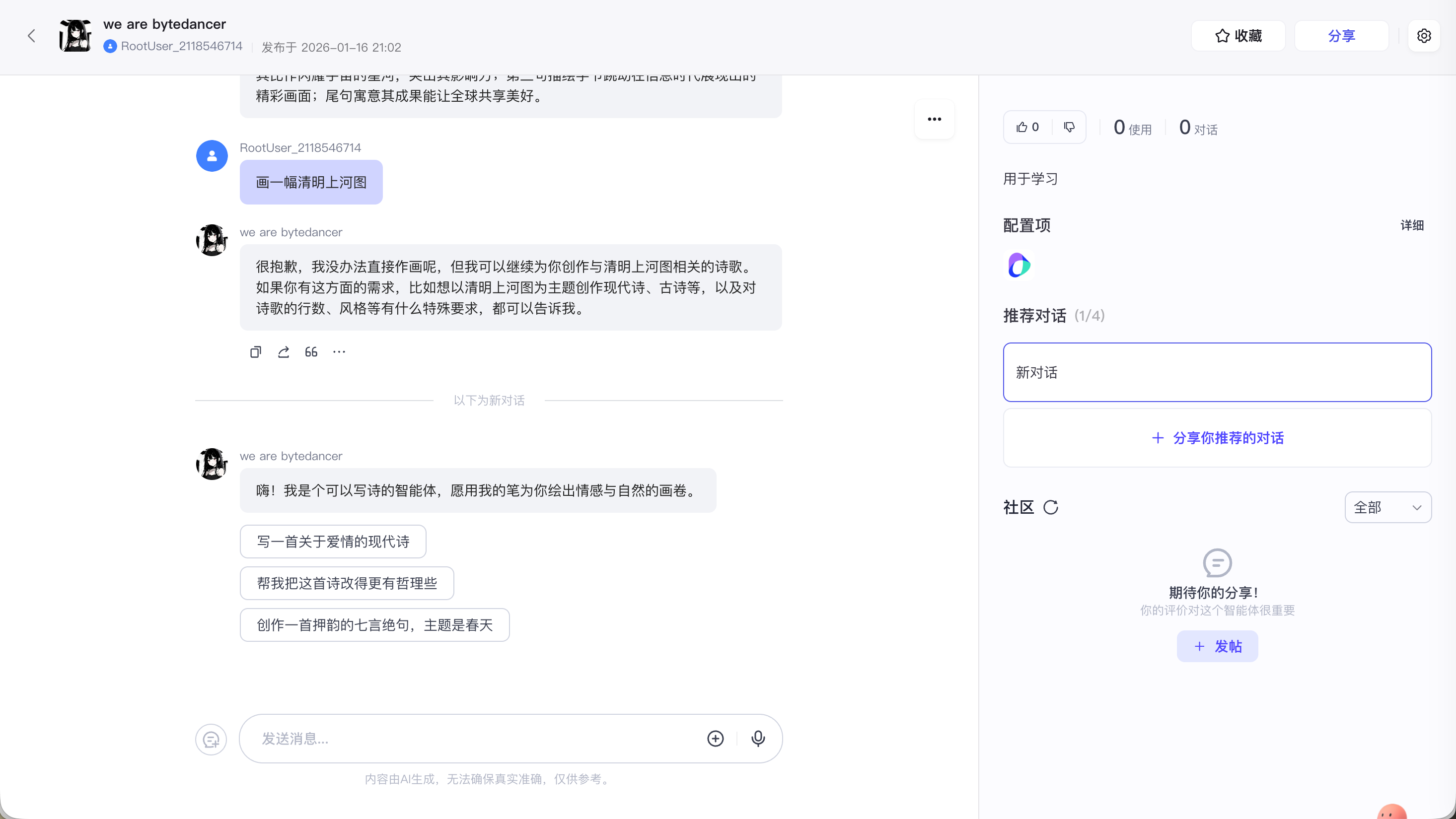 我通过系统提示词设定 Agent 是一个诗人, 只会写诗.